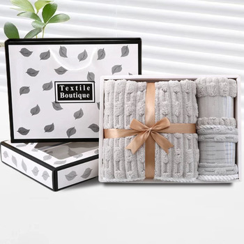 Hot Selling Coral Fleece Three-Piece Bath Towel Set Quick-Dry Absorbent Home Use Souvenir for Birthday Welfare Opening Gift Box