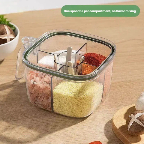 โหลพลาสติกใสแบบ4อิน1กล่องใส่เครื่องปรุงพร้อมช้อนกล่องใส่เครื่องเทศหลายช่องใสสำหรับใช้ในครัว