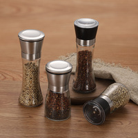 เครื่องบดพริกไทยสแตนเลส 304 แบบใช้มือ ขวดแก้วทรงเหลี่ยม ฝาเกลียว สำหรับบดเครื่องปรุงรส พร้อมลายพิมพ์